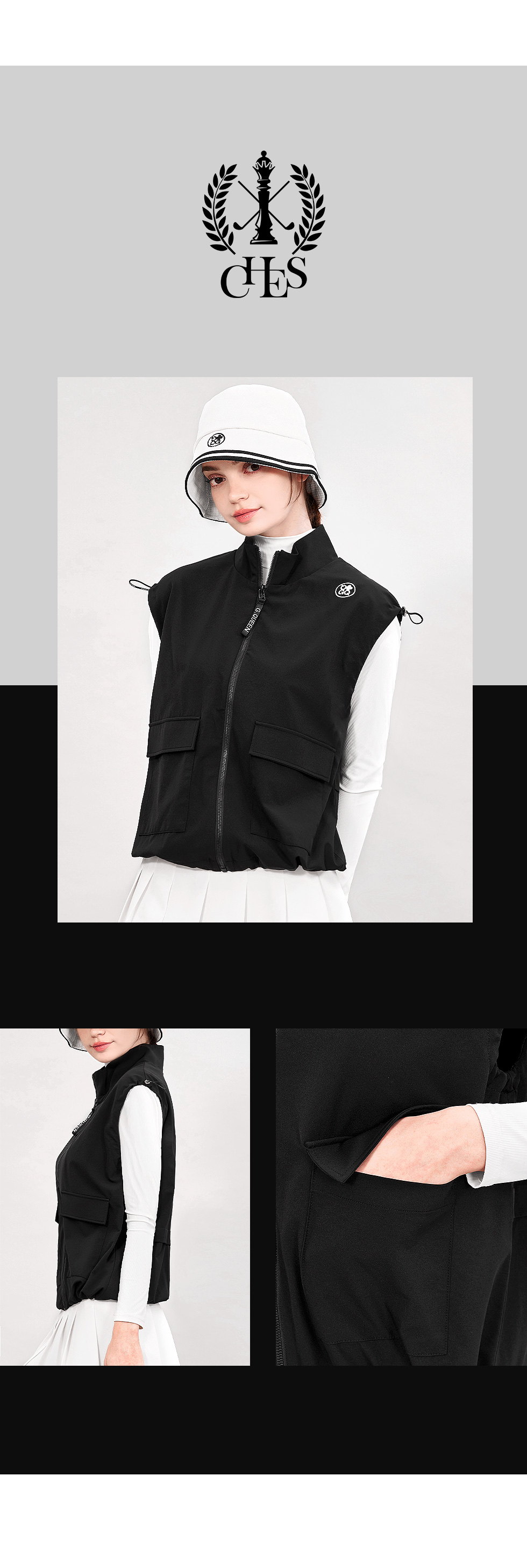 그린퀸 드베르 여성골프 아노락 집업조끼 여자골프조끼 간절기바람막이조끼