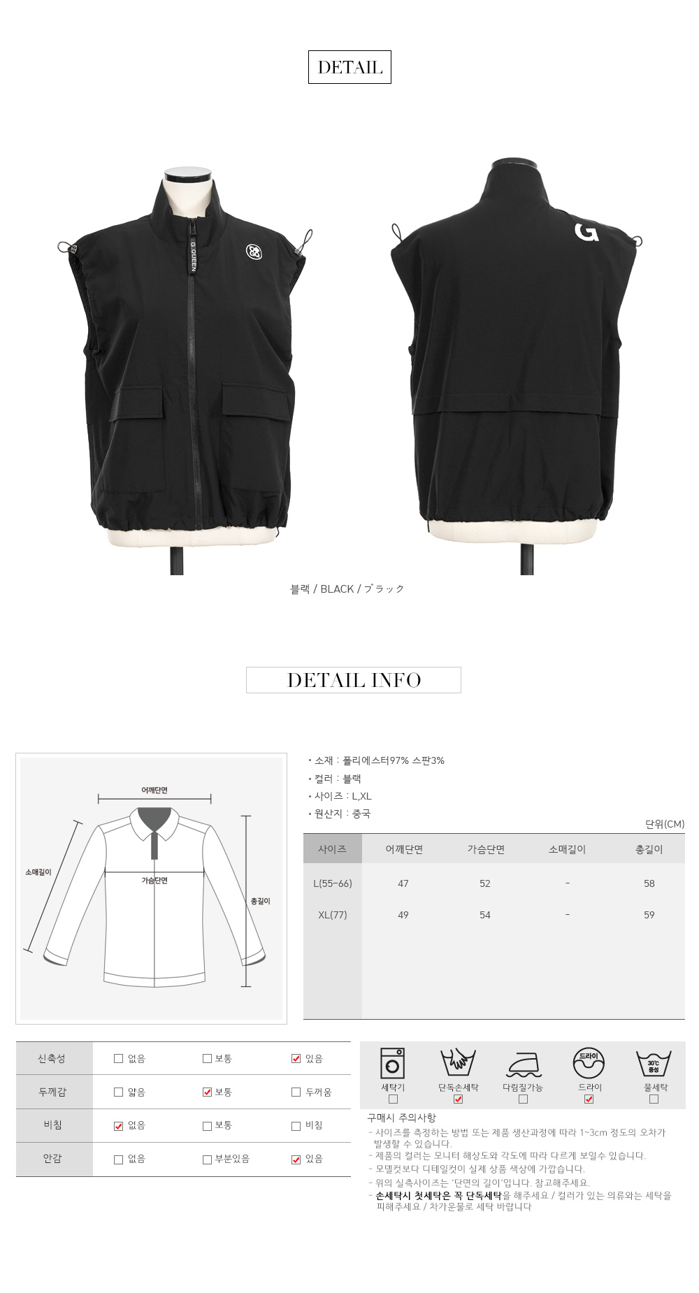 * 간절기 아노락 소재로 가볍고 쾌적한 착용감을 제공하는 집업 조끼