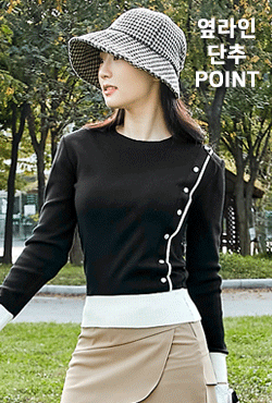 • 3color 부드러운 간절기 니트 소재의 가디건! 배색 시보리와 금속 단추 장식이 돋보이는 세련된 집업 가디건