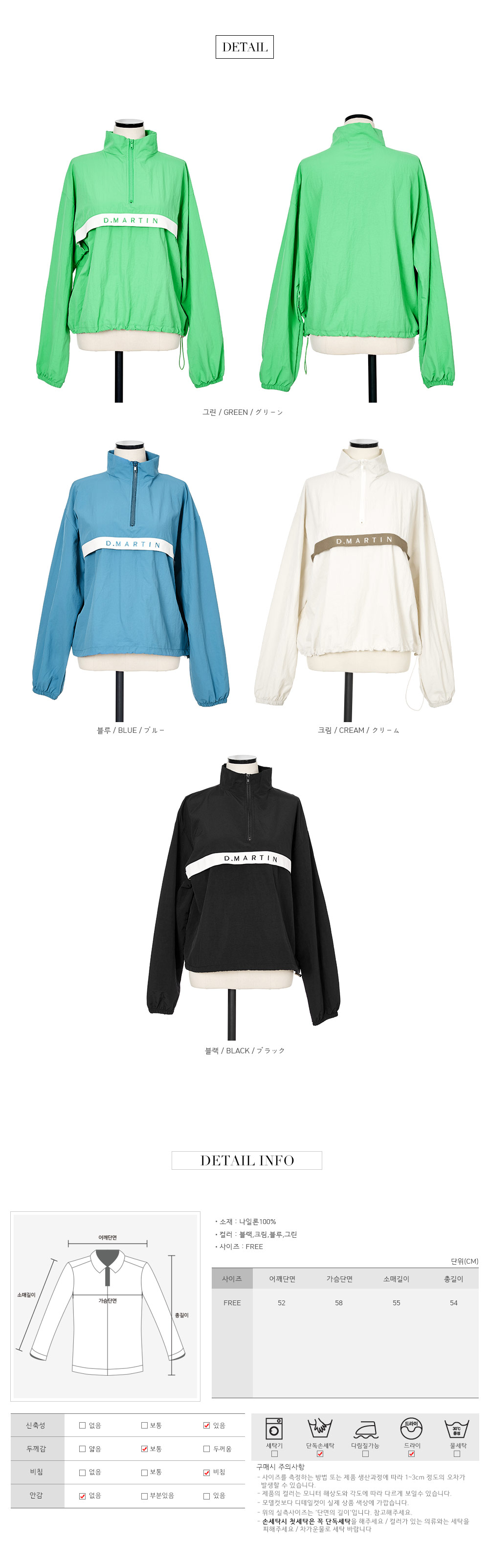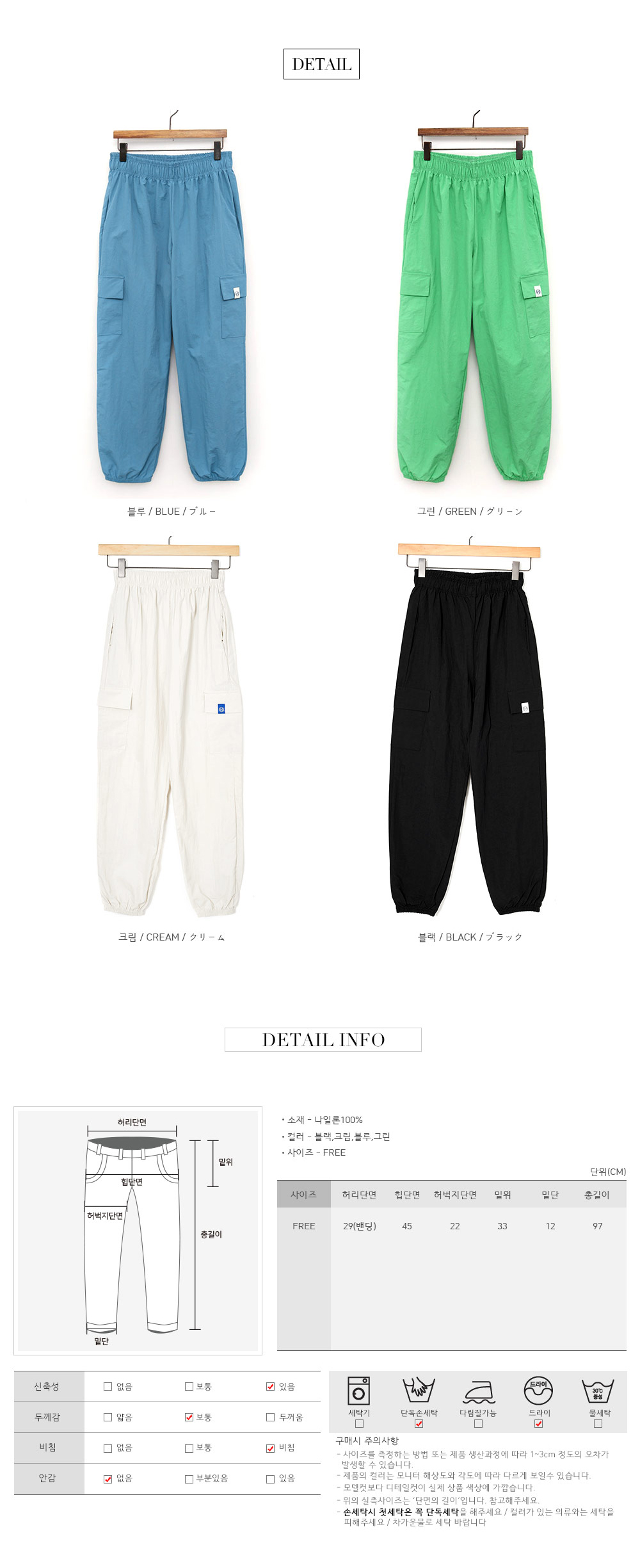 색상 옵션 선택 블랙 크림 블루 그린