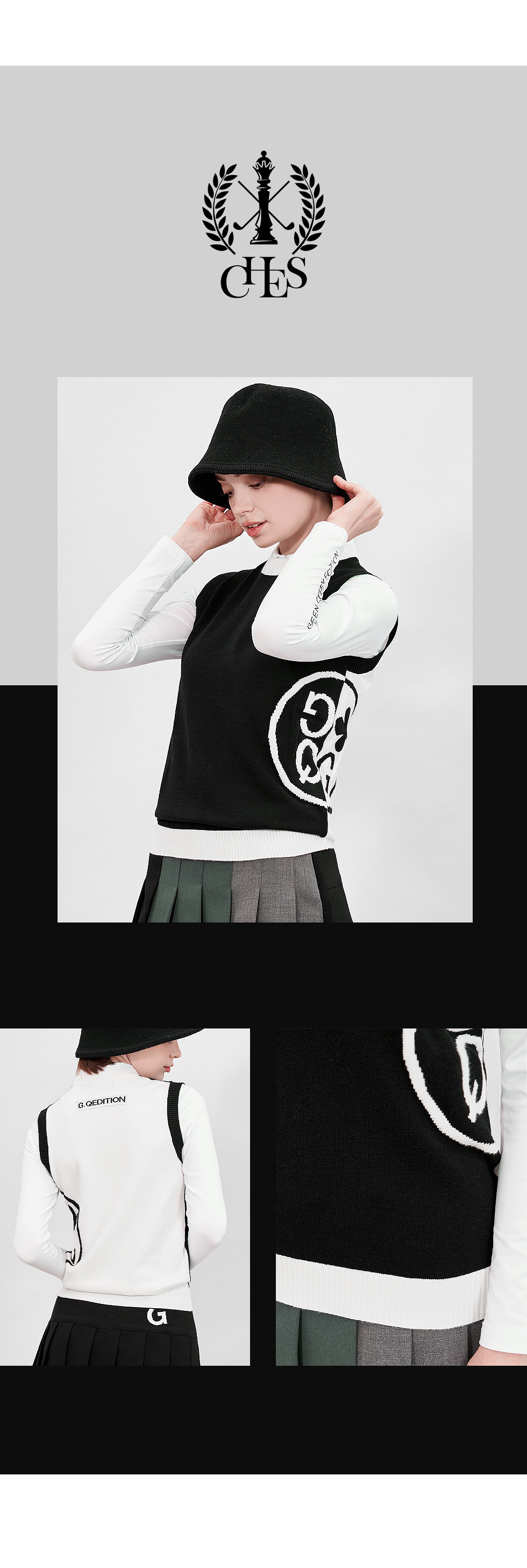 * 앞뒤가 다른 배색 디자인으로 고급스럽고 세련된 포인트가 살아나는 니트 조끼