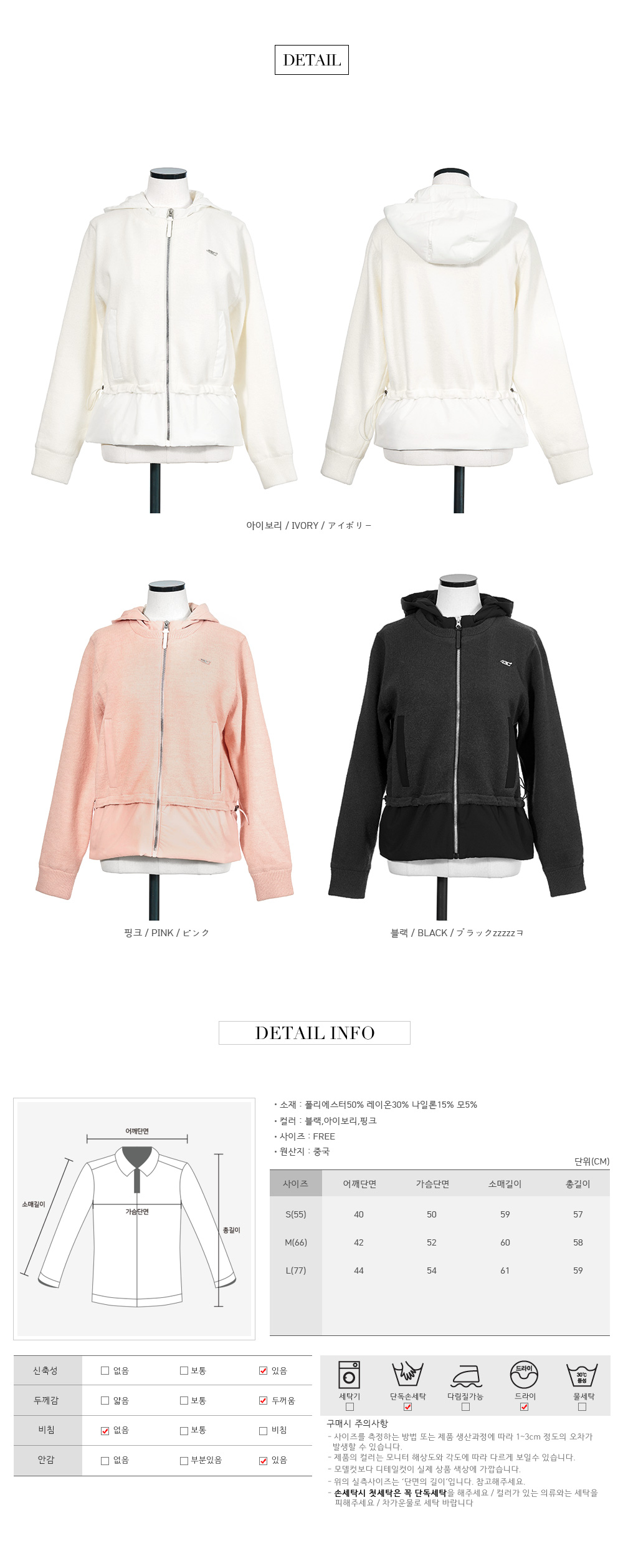 * 허리에는 조절 가능한 스트링이 있어 체형에 맞게 잘록한 실루엣 연출 가능