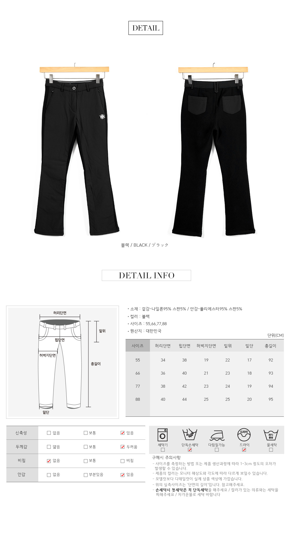 * 안감은 부드러운 기모로 가볍고 입는 순간 포근하고 한겨울에도 착용 가능한 겨울 팬츠