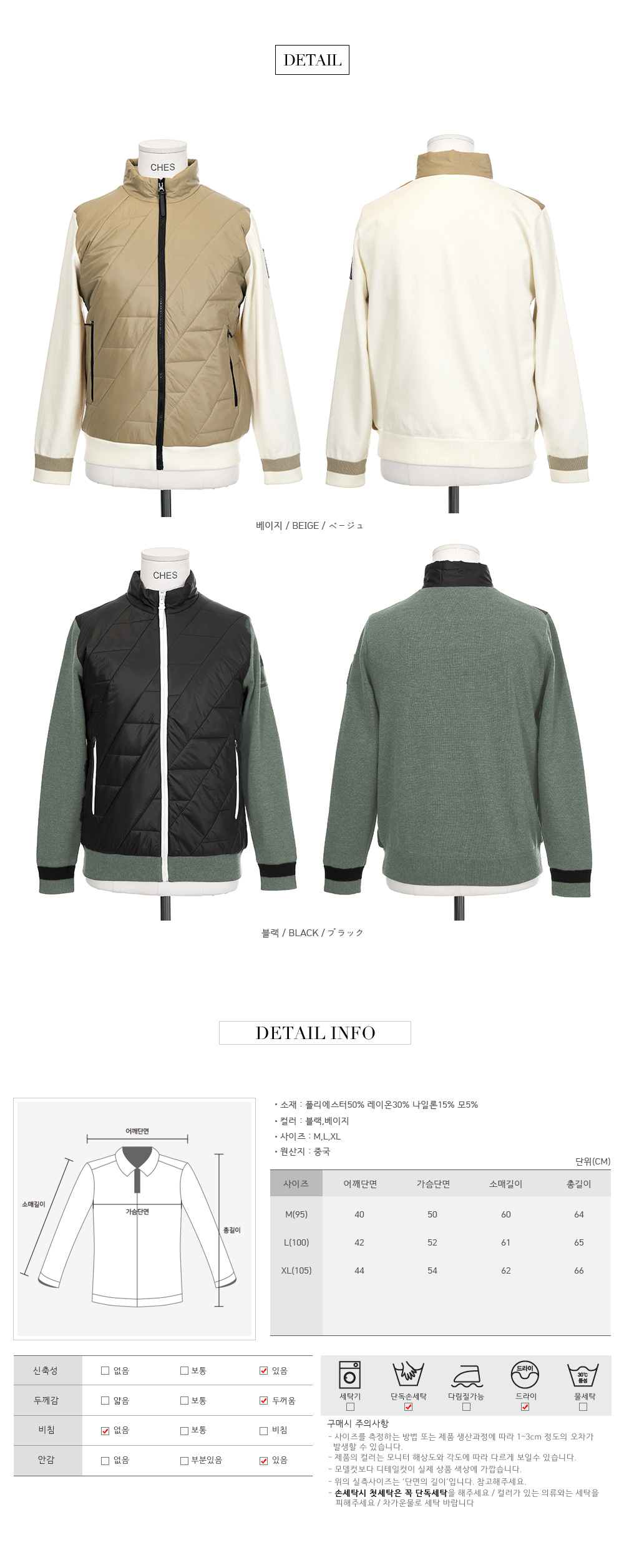 * 앞면은 패딩 소재로 보온력을 높이고 뒷면과 소매는 니트 소재로 활동성이 좋은 점퍼