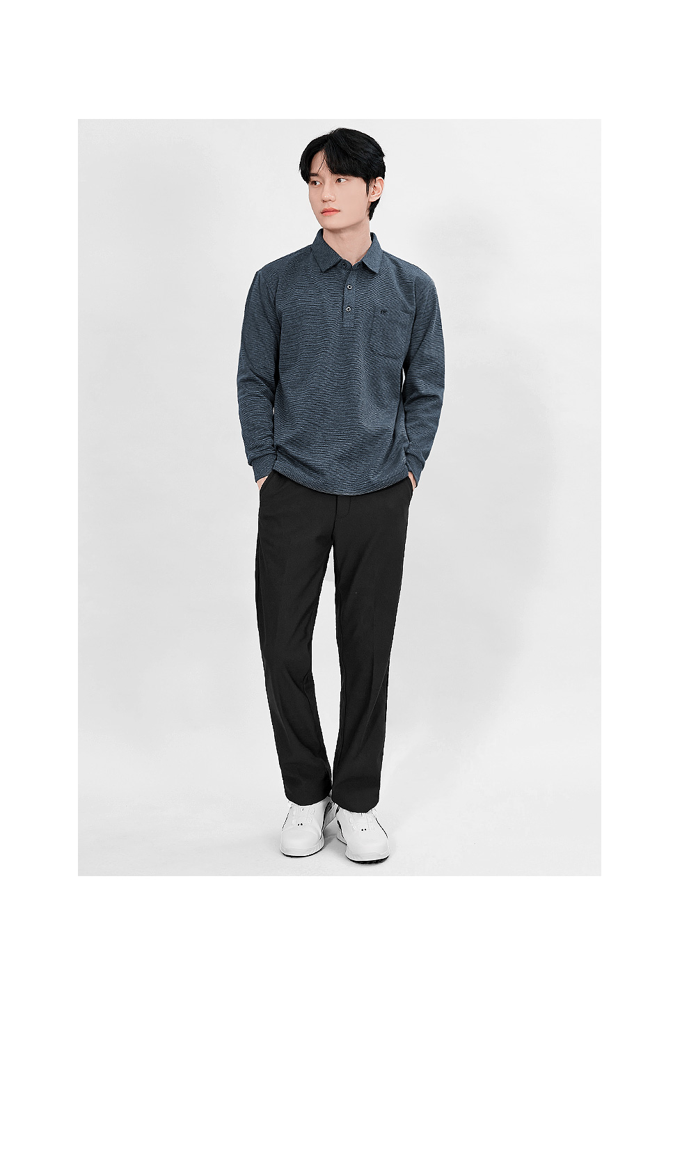 * 가슴 부분의 미니 로고 포인트가 전체적인 스타일에 센스 있는 포인트를 더해줘요
