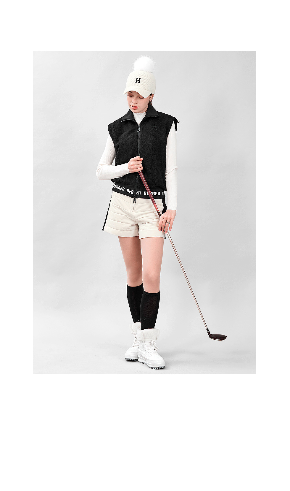 * 밑단에는 영문 레터링 시보리가 있어 허리를 안정감 있게 잡아주고 세련된 분위기 연출