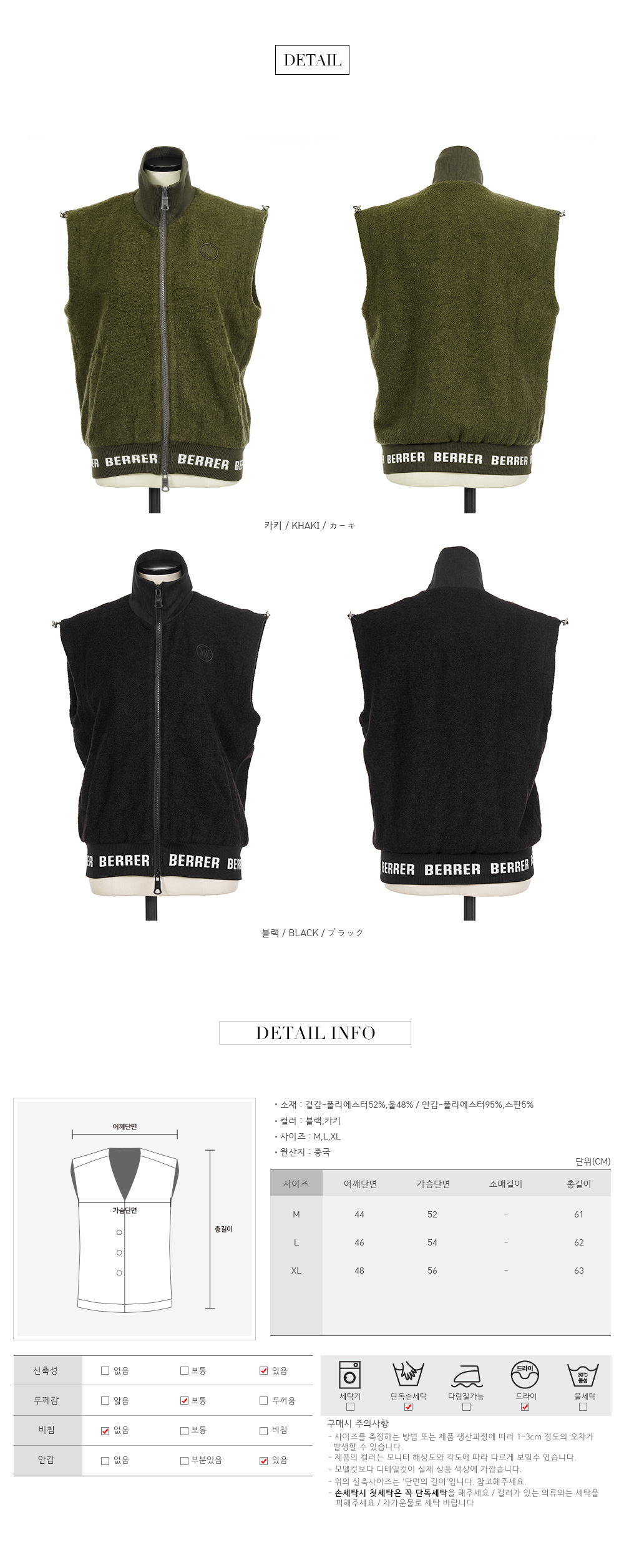 * 울 혼방 소재로 부드럽고 포근하여 한겨울까지 따뜻하게 착용 가능한 집업 조끼