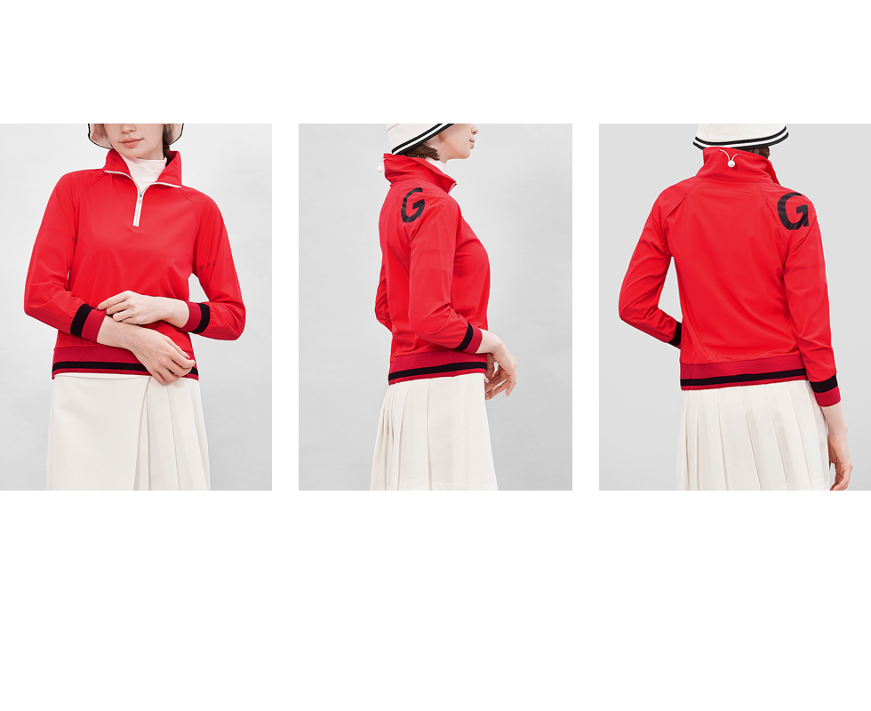 * 하이넥 반집업 디자인으로 스포티하면서도 깔끔한 분위기 연출