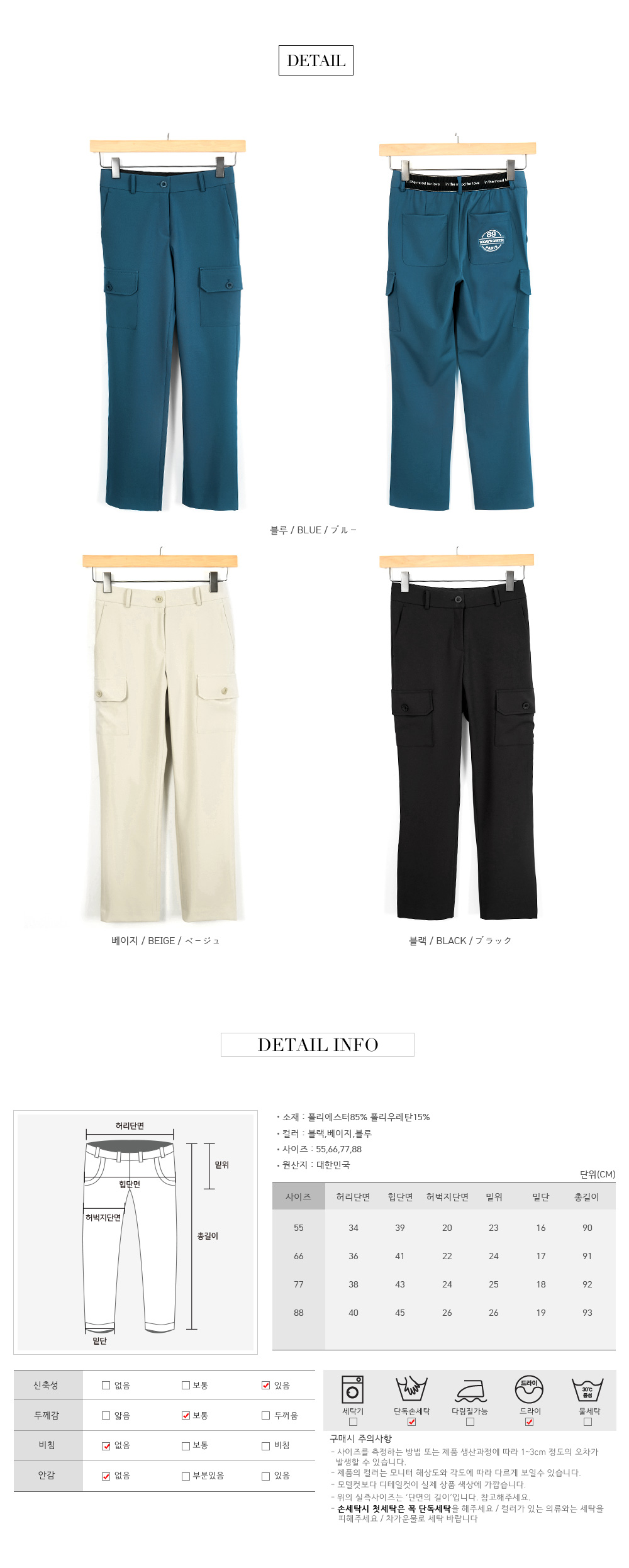 * 사이드 포켓이 있어 실용적이며, 허리 뒷밴딩으로 착용감이 편안한 팬츠