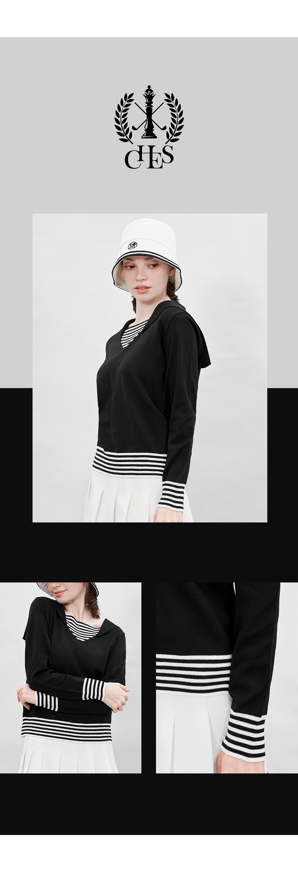 - home > WOMAN GOLF > 상의 > 벤시브 여성골프 간절기 세일러카라 니트