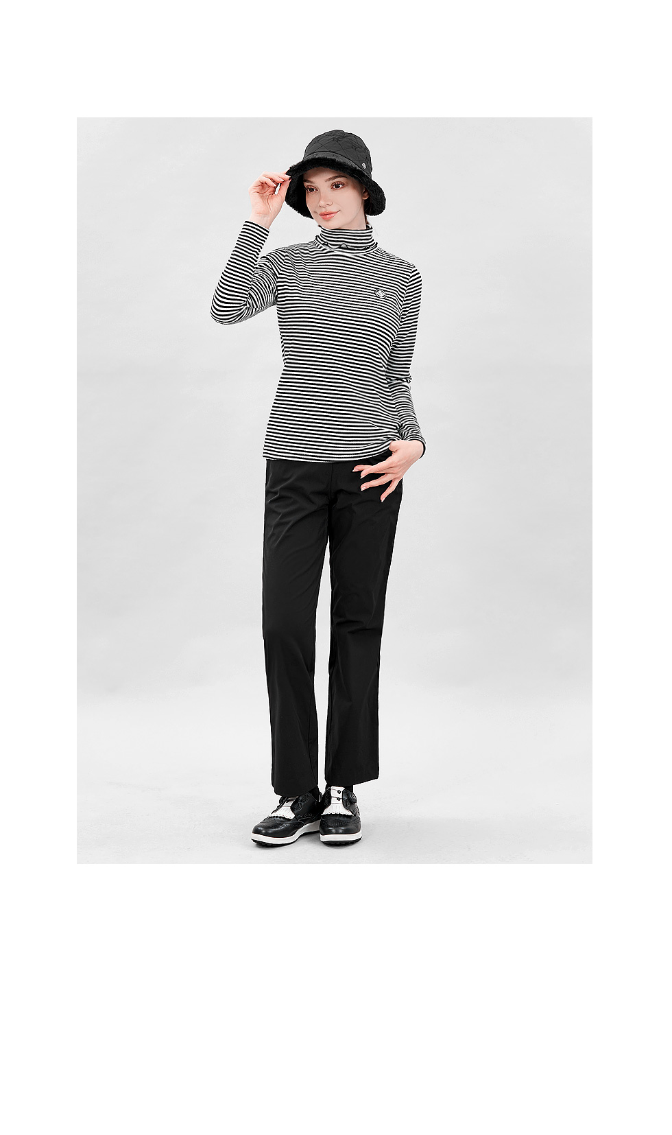 기모 미우 퍼포먼스 누엘트 여성골프 스트라이프 기모 폴라티셔츠 여자기모티셔츠