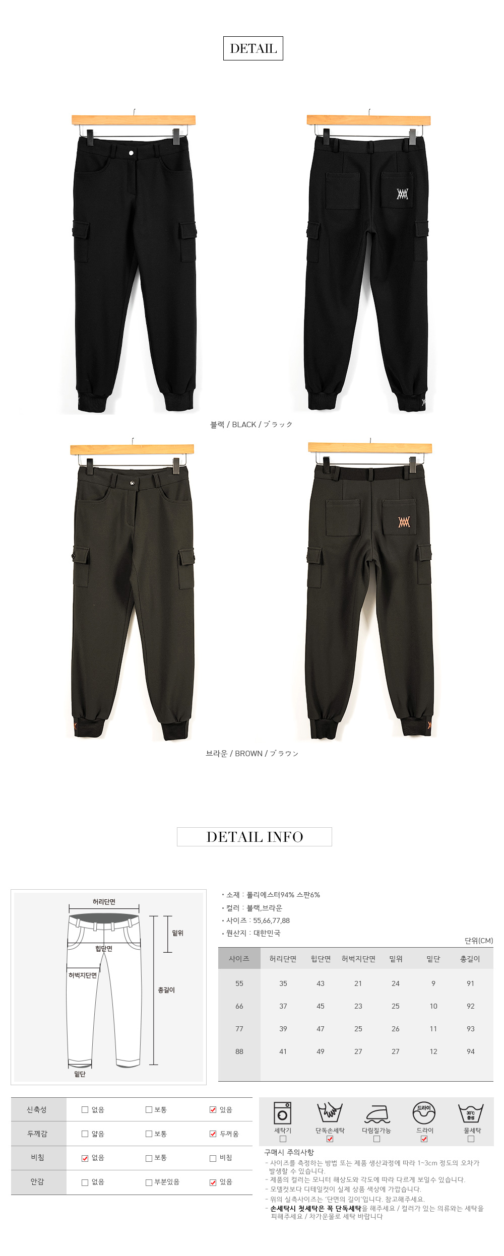 * 허리 뒷밴딩으로 안정적인 착용감과 편안한 핏을 유지하며 사이드포켓으로 실용성도 갖춘 디자인