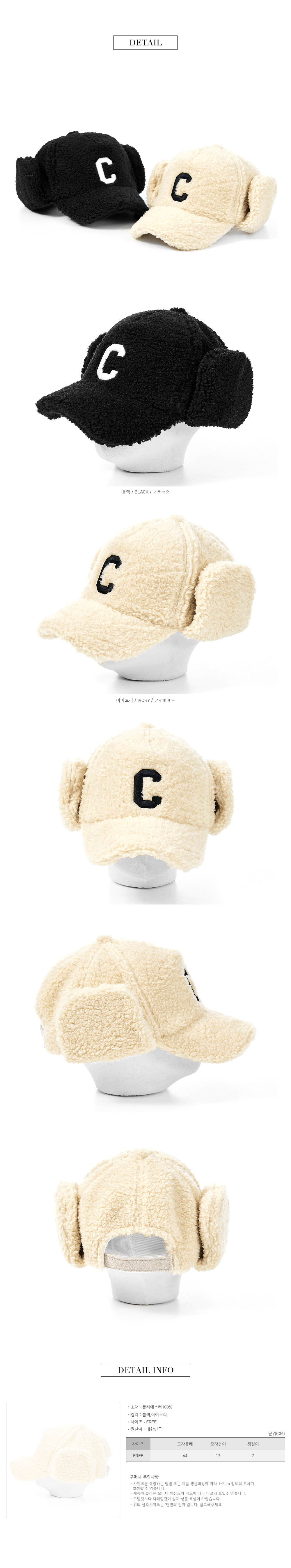 * 귀마개가 달려 있어 내려서 방한용으로, 올려서 깔끔한 캡모자 스타일로 2가지 연출 가능